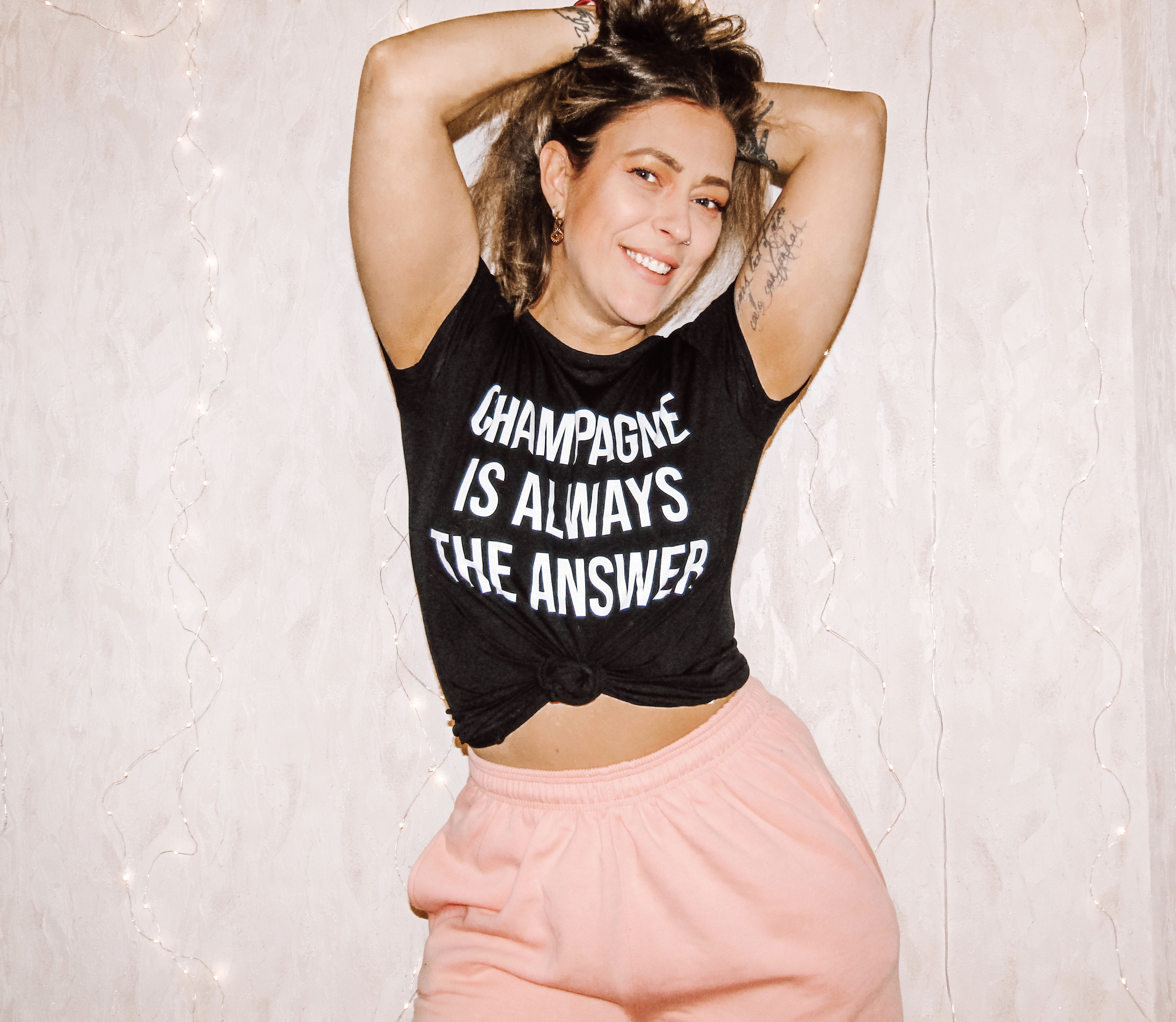 Black ‘Champagne Is Always The Answer’ Slogan T-Shirt – Mabel