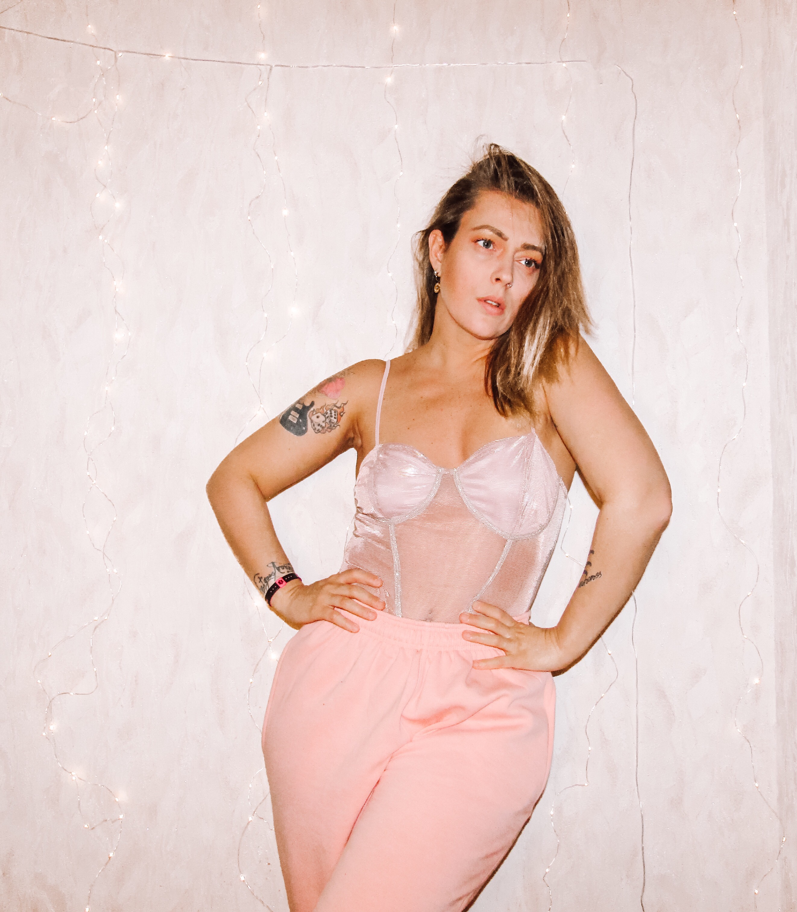 Pink Metallic Mesh Panel Strappy Corset Bodysuit – Jessica